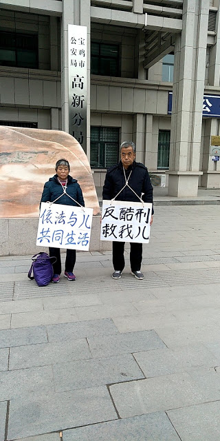 (维权网信息中心报道)2020年12月14日,本网获悉:仍遭关押的陕西人权律师常玮平父母为救儿子在宝鸡公安局高新分局前挂牌抗议。