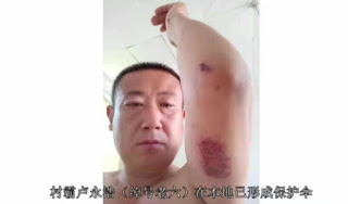 张耀东说:我举报村霸支书卢永浩,四处求告无门,自己反而被报复将右手掰伤,于2019年7月22号去北京国家信访局和中纪委举报,第三天(7月24号)在北京被程郭镇分片领导李晓杰跟踪,到7月25号在北京,被鲁F1835的警车将我乘坐的京BW3177的出租车别停,下来十余人将我从出租车拖下来殴打,头朝下拖到鲁FA523D面包车上,李晓杰和四名程郭政府工作人员对我殴打、侮辱,绑架带回莱州公安局,强按“寻衅滋事”罪名监视居住。