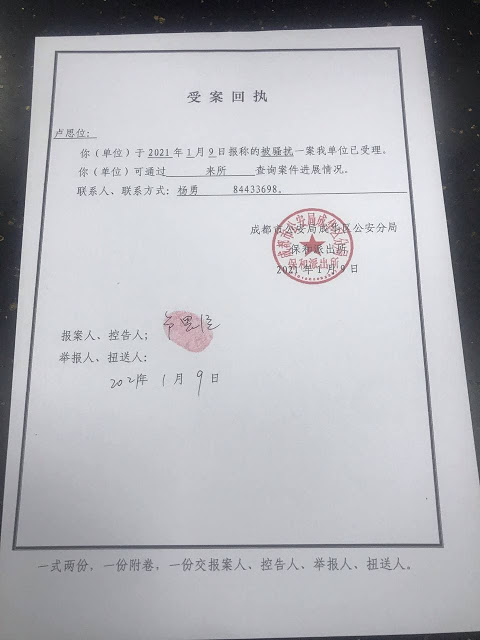 顺便说一下,今天是我的生日。我现在去保和派出所报案,请大家关注,电话028-84433698,地址,长融东三路96号。
