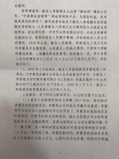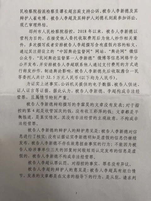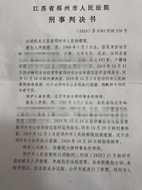 2021年1月7日,江苏省邳州市法院以“非法经营罪”判处“中国舆论监督网”创办人李新德有期徒刑5年,其子李超被判处有期徒刑1年。刑期至:2024年10月9日。一审宣判后,李新德表示准备上诉。