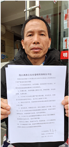 因为肖招明在担任村主任时不称职,而且还存在严重违法违纪行为,肖青山立即给江西省吉安市委组织部,列出肖招明霸占集体土地、在扶贫项目上不负责任造成巨大损失、公款吃喝、环境污染等违法违纪行为,希望市委组织审查,避免带病提拔。