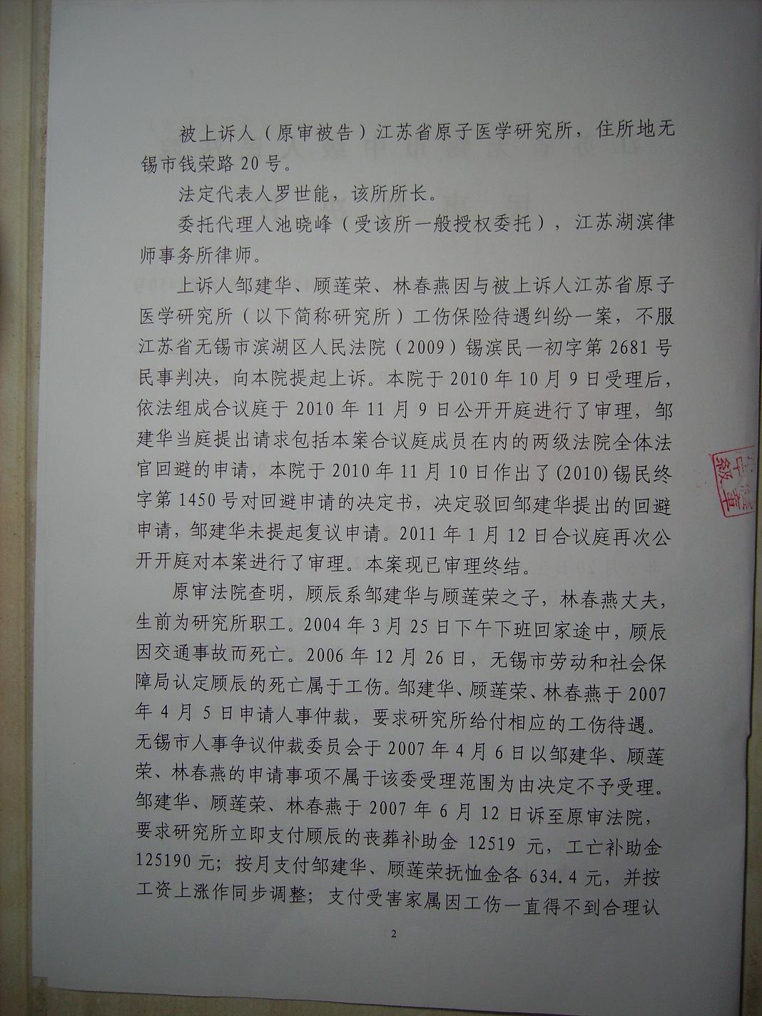 为维权,我只好将江苏省原子医学研究所告上了法庭。从2007年初,一直到2011年的现在,从无锡滨湖区法院、无锡中院到江苏省高院,再到无锡滨湖区法院、无锡中院,法院从不受理到受理,共经历了七审,耗费了我四年半的宝贵时间。