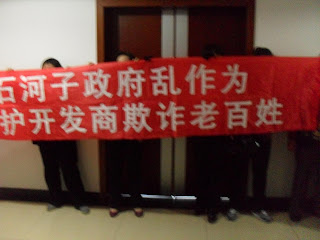(维权代表们来到市委书记宋志国的办公室门口拉横幅抗议)