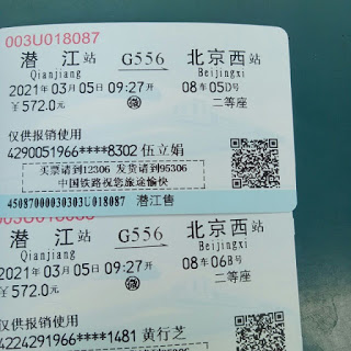 (维权网信息中心报道)2021年3月6日,本网获悉:2021年3 月5日是中央两会召开的日子,每年两会召开都是维权人士最艰难的日子,湖北潜江市银行下岗职工潘向荣、黄行芝、伍立娟三人买了3月5号去北京的动车票,买票后售票员就把车票拿走说要登记,登记的目的是通知公安相关部门进行拦截。