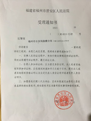 (维权网信息中心报道)2021年3月11日,本网获悉:福州维权人士江智安前往晋安法院起诉鼓楼分局。