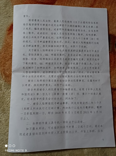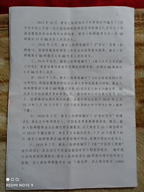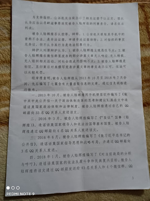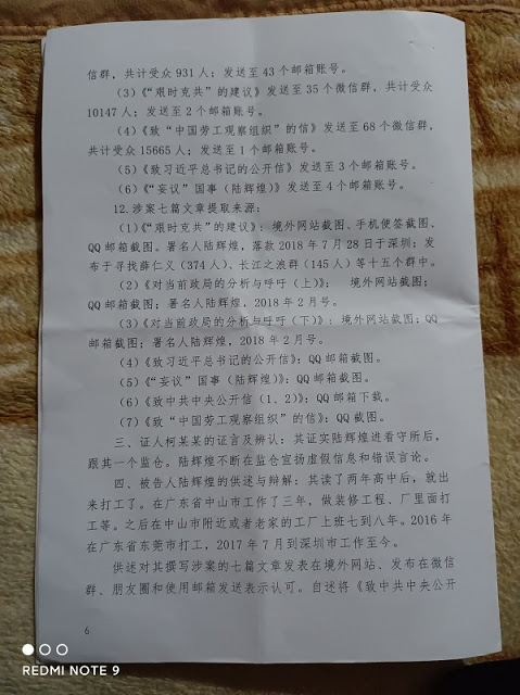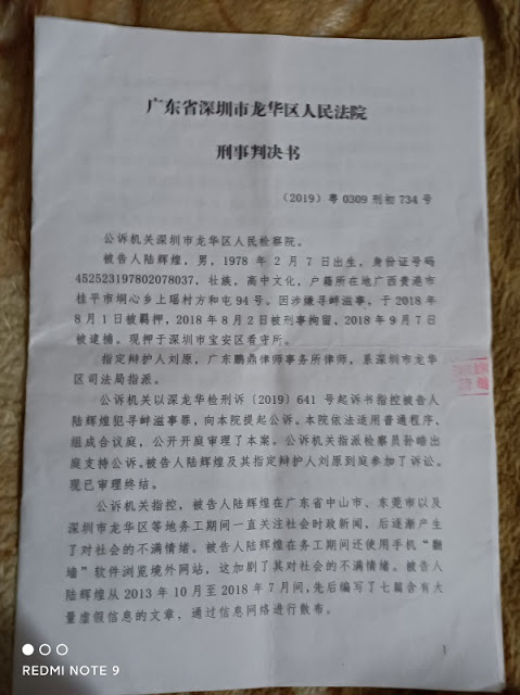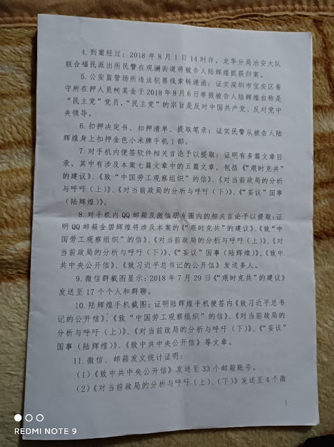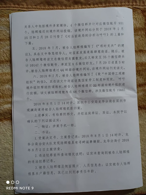 2019年4月15日,深圳市龙华检察院以所谓的散布虚假信息、辱骂国家领导人、造谣污蔑国家的政治体制、法律制度、基本国策、指导思想、战略布局、反腐斗争、发展路线、劳工制度与现状、民族复兴目标等,涉嫌寻衅滋事罪起诉,所谓的罪证就是其前面列举的六篇文章。