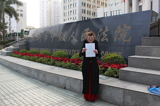 (毁容且遭遇司法不公的焦玉贵在中级法院抗议)