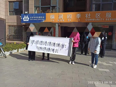 (维权网信息中心报道)2021年4月2日,本网获悉:2021年3月23日上午,在北京朝阳区东坝地区的福润四季社区,业主代表去居委会沟通,要求在成立业委会时,能够直接参加选举。只是因为他们在社区门口举了标语横幅,标语内容为“要求选民直接参选!拒绝被代表”,就招致警察到场,将现场的业主代表全部抓捕。其后,一名领头维权者被以“袭警”罪名拘留至今。据悉,这名领头维权者是一名海归女博士。而从现场的照片和视频里,这名女博士根本没有任何“袭警”行为。