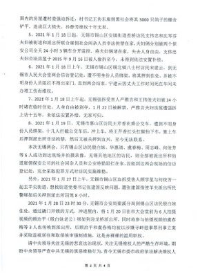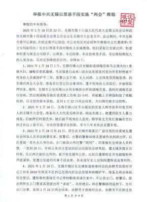 2021年2月份,在无锡市“两会”期间,中共无锡市委书记黄钦、市长杜小刚、政法委书记徐劼、公安局长刘必权以黑恶手段对无锡维权人实施打压维稳,对此,无锡维权人以联名签字的方式,向江苏省委和中央领导进行举报,但,意想不到的是,黄钦书记却指示无锡公安不择手段地对联名签字人员实施恐吓、威胁、打压迫害。