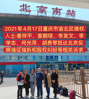 (维权网信息中心报道)2021年4月21日,本网获悉:2021年4月17日李学志、姜祥平等重庆维权人士上访北京,反映重庆渝北区强拆私房、违法暴力征地、公安不作为等严重违法行径。