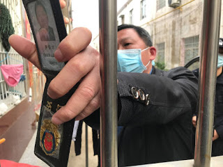 谈兴正酣时大门外来了七八个国保和警察,一边摇着铁栅栏大门(大门了把锁)大声嚷嚷着要家里来的两名客人出来。我就走出客厅来到大门口:“你们让我们出来干什么?”一国保说“出示一下你们的身份证!”我说:“那请你先出示一下证件。你不打开我怎么看?哦,尹伯才。”这时江律手里举着手机边录像边和大门外的那些人讲理谈法。门外那些人非要我和陶红出示身份证,说要查明身份。摇大门拧锁头,试图想冲进来。江律气的够呛,大声呵斥让他们滚。我下意识的拍了江律后背两下说:“江律,别生气。”也不知是我的安抚起了作用,还是江律早以习惯了这种场面。反正接下来江律不再生气,语气也平和下来。就像在上一堂普法教育课,这是他的专长。我在边上一边听一边偶尔应对那些人的无理要求。我告诉他们“我是江苏昆山的王和英,她是张家港陶红,我们来这里只是探望朋友,也告诉你们我们是谁了。查我们的身份,依据哪条法律?我们是罪犯吗?江天勇是罪犯吗?如果是,你们就把他关起来。要不然你们就在他家门口立个牌子,写上人与狗不得进入江天勇家,那我们就不来了呀。难道你们家来个客人也要查明身份吗?”