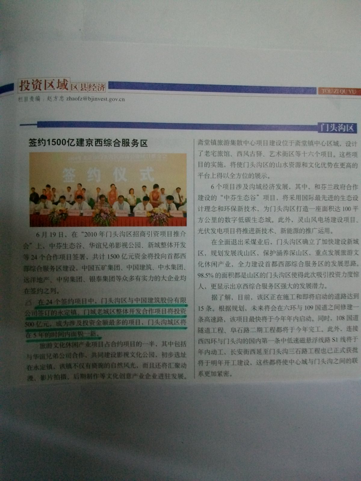 附:门头沟区政府《北京门头沟引资1500亿建世界最大生态城》宣传报道