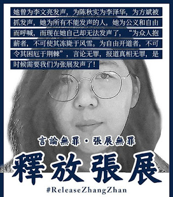 狱中著名人权捍卫者张展女士昨日与母亲视频 身体情况危殆