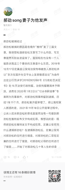 郝劲松被捕的原因是在境外“推特”发了三篇文章,我很想知道郝劲松文章写了什么内容,写文章居然写到坐进监狱了。