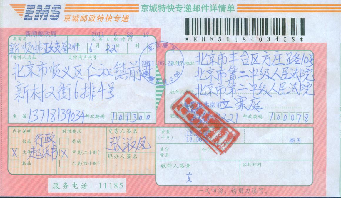 (经网上查询北京市二中院已签收行政诉状,但至今不立不裁)