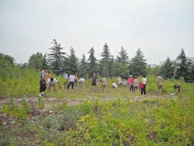 (大家在张民贤原房屋旧址上除草)