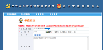 (维权网信息中心报道)2022年5月5日,本网获悉:受司法腐败坑害的江苏维权人士张建平先生,在今年3月底向宜兴市纪委监察委官网,就宜兴市法院专委(副院长级别)王俐强涉嫌刑法第三百九十九条故意枉法裁判进行举报,但到现在一个多月过去了,该纪委监察委显示仍然是“您反映的电子邮件本网站已收到”状态。