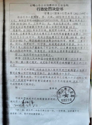 2022年1月4日早上8:30耿则军又被叫去问话,晚上家人打电话才知道耿则军又以涉嫌组织、资助非法聚集被刑事拘留,并在1月25日以组织非法聚集罪批捕,羁押在石嘴山市看守所,先前被行政拘留的其他五人则以同样罪名被取保候审。目前耿则军传道已被羁押了5个多月。