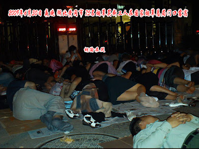 2009年6月30日,夜晚75人露宿国家烟草总局门口广场(请看照片)。