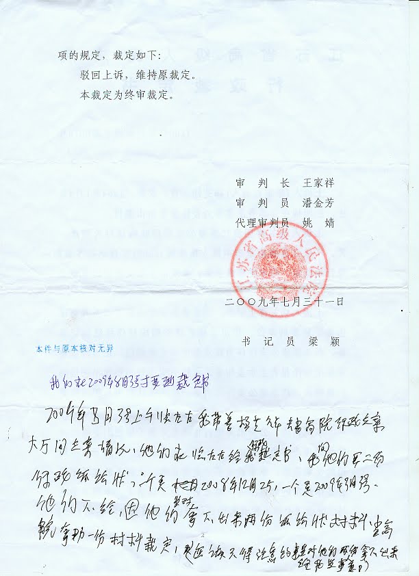 江苏冤民杨芝祥遭到最高法院戏弄