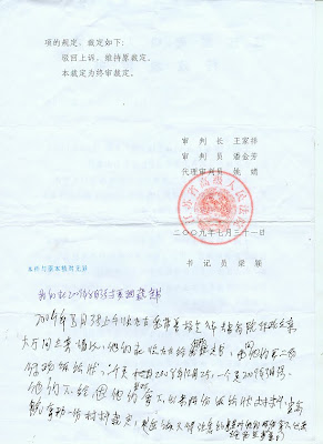 诉江苏省公安厅法医中心违法而遭江苏省两级法院裁定驳回起诉的农民杨芝祥,于2011年7月1日上午接到最高法院立案庭电话通知,称其申诉再审的案件最高法院已决定立案。7月4日,杨芝祥在妻子的搀扶下来到了北京最高法院,结果一男一女两个没有最高法院工号牌的、且形迹可疑的便衣贼头鬼脑交给杨芝祥一份与《案件受理通知书》截然相反的《驳回再审申请通知书》后撒腿就跑。