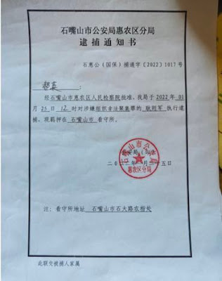 2022年1月4日,其再次被传唤,后被嘴山市惠农区警方以涉嫌“组织、资助非法聚集罪”刑拘;同年1月25日,又被嘴山市惠农区检察院以涉嫌“组织非法聚集罪”正式批捕,指控其因多次在惠农区多地“利用基督教进行非法聚会”,严重扰乱了社会秩序,故其行为触犯了政府相关法规;后其案被地方检察院提起公诉,又移交至石嘴山市惠农区法院;