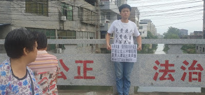2021年8月4日,谭兵林到街上举牌,呼吁当局为狱中病重的张展保外就医。