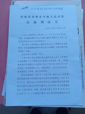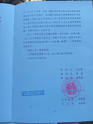 而且,劳动教养制度早在2013年1月7日就有中央政法委宣布停止,并在同年由全国人大常委会发文废除了,福建省也于2018年1月1日施行了《征地补偿和被征地农民社会保障办法》,这些均证明仓山区人社局在2021年克扣林兰英的失地农民养老金违法,由此进一步证明,福州市两级法院的行政判决,无论程序还是实体上,均涉嫌枉法裁判行为。