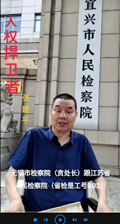 张建平先生说:宜兴检察院如此态度,我当场就责问卢旭巍,你们的总书记习近平不是一直强调要加强党对司法的绝对领导吗?加强党对司法绝对领导就是官官相护不作为?你们在人身损害赔偿案件都这种行为,不是打脸习近平的“要让人民群众在每一起诉讼中都感受到公平正义”吗?卢旭巍和检察院内其他人都一副无所谓的表情。