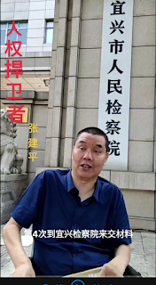 (维权网信息中心报道)2022年7月27日,本网获悉:今天上午,人权捍卫者、枉法裁判犯罪的被害人张建平先生到江苏宜兴检察院,第四次向该检察院提交民事诉讼监督申请材料,并向接待的书记员卢旭巍说明,这一次是无锡市中级法院、无锡市检察院、江苏省检察院等三个部门均告知,针对宜兴法院(2021)苏0282民申10号民事裁定而提起的民事诉讼监督申请,应当由宜兴市检察院第七检察部(控申)受理。
