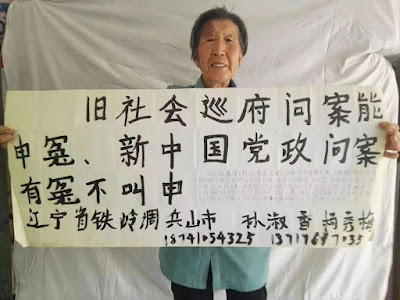 (维权网信息中心报道)2022年9月2日,本网获悉:今年已经84岁的辽宁铁岭调兵山市晓明镇娘娘庙村的孙淑香,因丈夫的工亡50年得不到依法赔偿,上访还屡遭打击报复,在今年全国“两会”期间举牌要求罢免省委书记与省长后,今又将新、旧社会作比较,在“二十大”前夕论新、旧社会制度优劣。