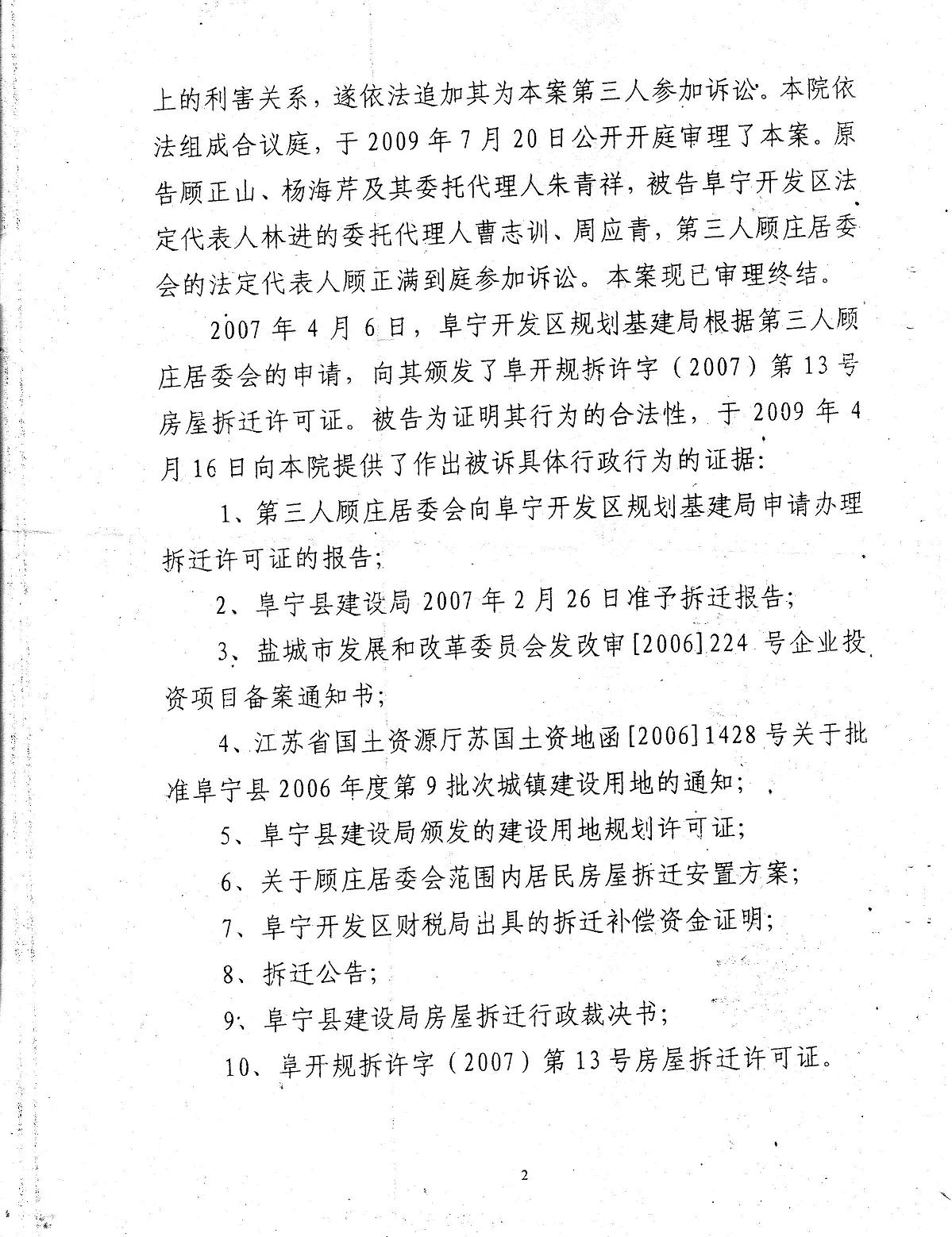 被告机关:江苏省阜宁县人民政府,法人代表:顾云岭县长。