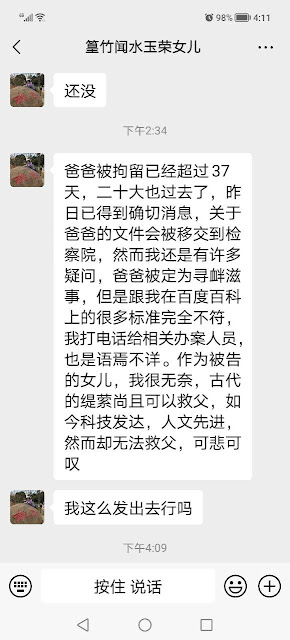 二十大前被刑事拘留江西九江公民李玉荣已被批捕 2022-10-26 权利运动编辑 (维权网信息中心报道)2022年10月26日,本网获悉:疑因网络言论江西省九江市濂溪区公民李玉荣,微信公众号“仁即博爱”于2022年9月7日因涉嫌“寻衅滋事罪”被浔阳区公安局国保跨区抓捕,带走时说是口头传唤,后转成刑事拘留。家属尚未收到拘留通知书。目前李玉荣确认已遭批捕,案子已经移交检察院。 对李玉荣的境况,本网将持续关注。 本文转载自:https://wqw2010.blogspot.com/2022/10/blog-post_26.html 分享这篇文章到: