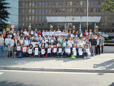 (上海知名维权人士谈兰英、项文寅、杜青艳陪同焦东海医生到卢湾区法院要求立案)