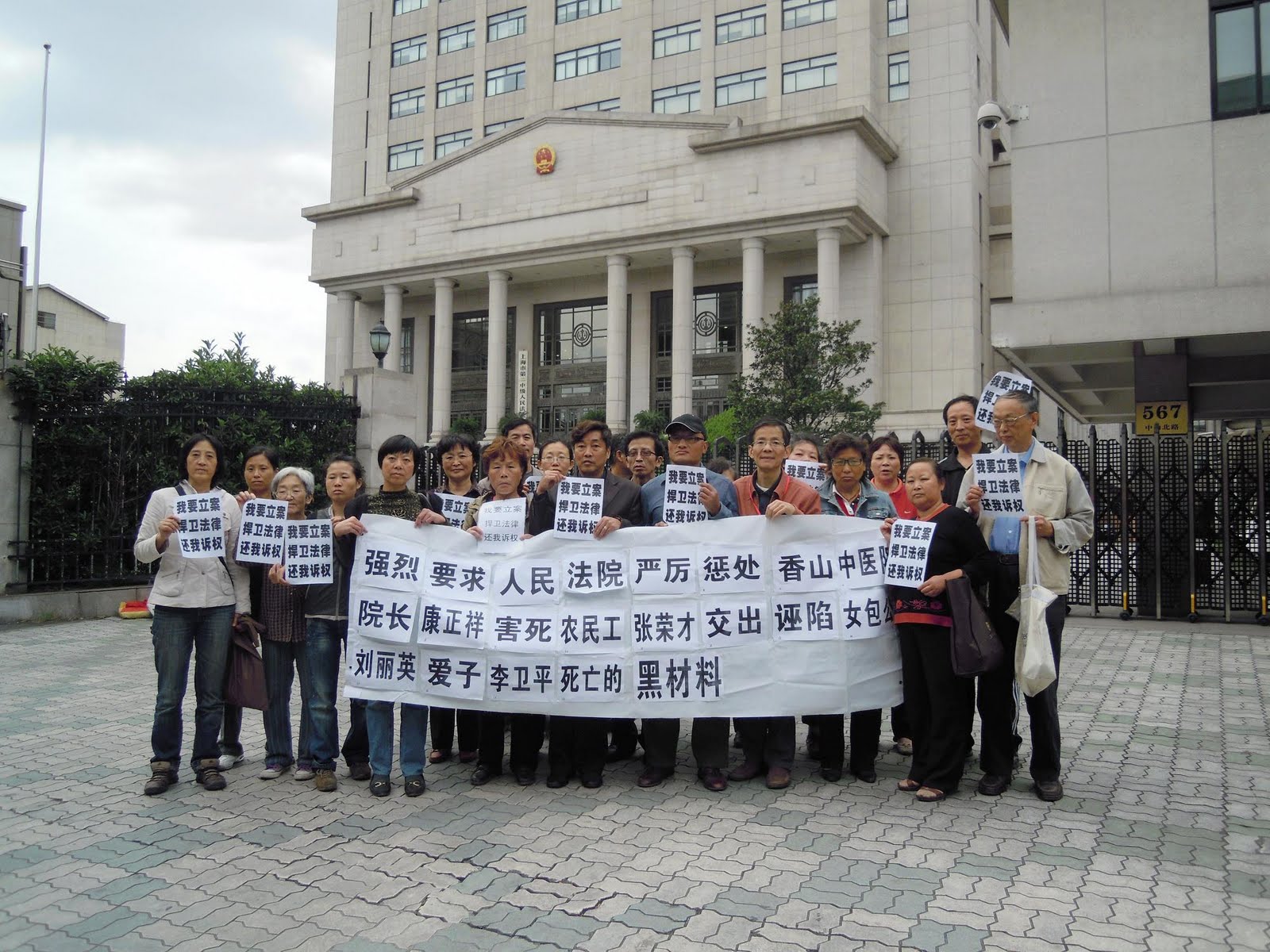 (上海知名维权人士谈兰英、项文寅、杜青艳陪同焦东海医生到卢湾区法院要求立案)