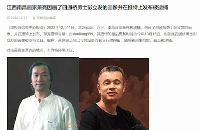 (维权网信息中心报道)2022年12月17日,本网获悉为四通桥勇士彭载舟画像而遭中共当局逮捕的南昌画家萧亮的案情及简历,现在通报如下: