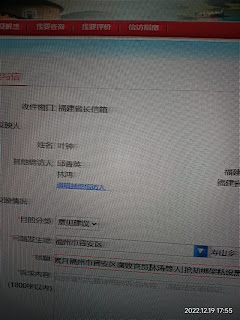 (维权网信息中心报道)2022年12月23日,本网获悉:中国是一个坚持党的领导的国家,出了成就那当然是党的英明领导,那么犯了违法国家宪法法律的行为后,按照有权就有责的对等原则,福建省福州市黑监狱被害人叶钟、邱香英、林鸿基于该原则,将亲自指挥、亲自部署黑监狱的晋安区区委书记林涛、晋安区鼓山镇党委书记林华、新店镇党委书记郑忠棋、寿山乡党委书记郑跃乾、宦溪镇党委书记吕立邦这些领导人,于日前以控告的方式,通过政府、纪委监委网站进行投诉。