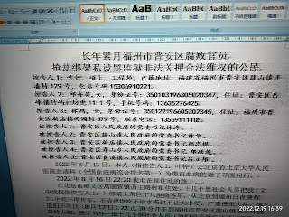 附:《长年累月福州市晋安区腐败官员抢劫绑架私设黑监狱非法关押合法维权的公民》