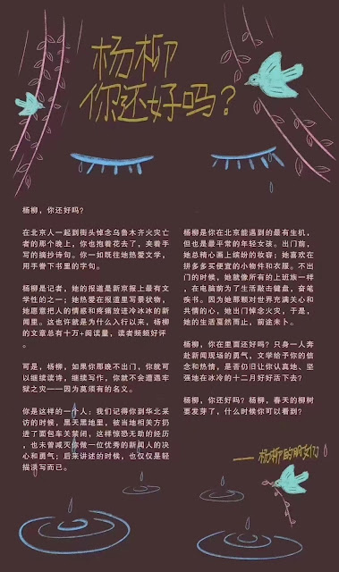 目前本网获悉,因“白纸抗议运动”于北京被抓捕的杨柳、曹芷馨、古煜、陈军辉四人的情况,现在通报如下: