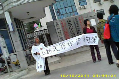江苏无锡知名维权人士华惠清被囚禁在黑监狱中已20余天,其80多岁的老母亲和妻子丁凤英在众乡亲的陪同下,来到由中共中央总书记、军委主席胡锦涛站岗的国防教育基地黑监狱,要求无锡当局立即释放华惠清。