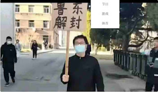 2022年3月27日,曾因手举写有“鲁东解封”及“坚决反对如此高频的全员核酸检测”等内容的牌子,在校园南区和北区校园内行走约20分钟,以此抗议校园封闭管理和全员核酸检测的有关规定,遂即刻被烟台市芝罘区世回尧派出所警方以“扰乱单位(校园)秩序”为由强制带离,并受到警方数次警告与行政处罚;