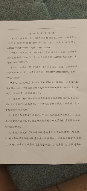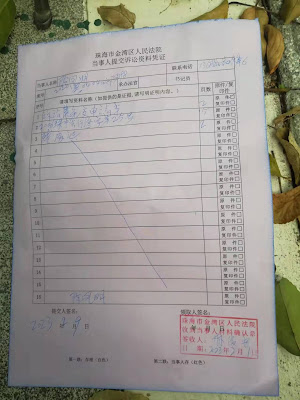 (维权网信息中心报道)2023年2月9日,本网获悉:昨天,广东珠海伤残军人陈风强和残疾哥哥陈凤明就公安女干部杨虹滥诉一案的上诉案,收到法院的诉讼费缴纳通知,今天陈凤明持陈风强的伤残军人证和自己的残疾人证,到一审法院提交诉讼费免交或缓交的申请。书记员接收了申请材料,并出具了收据。