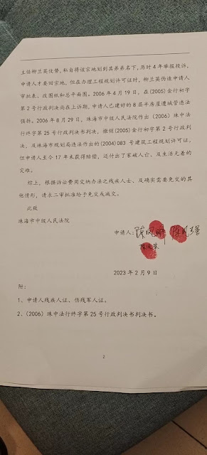 2023年1月10日,陈风强和哥哥陈凤荣、陈凤明不服(2022)粤0404民初3398号“同一法院同一个法官为警察特权”作出的完全不同的民事判决,向珠海市中级法院提起上诉。另外,公安女干部见陈氏兄弟上诉,也于今年1月16日提起了上诉。