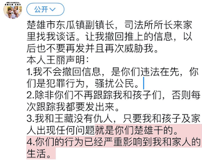 3.我和王藏没有仇人,只要我和孩子及家人出现任何问题就是你们楚雄干的。