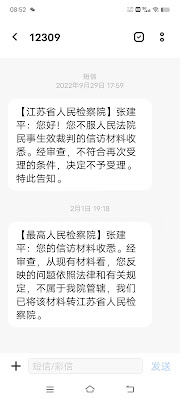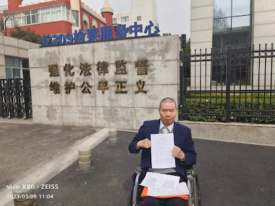 (维权网信息中心报道)2023年3月8日,本网获悉:今天上午,维权人士张建平根据最高检察院于2023年2月1日短信告知,再次到江苏省检察院,就宜兴市检察院与无锡市检察院拒不履行民事诉讼监督规则行为,要求作为上级检察院实施监督,然而省检察院接待人员仍然不作为,只是告知可以去最高检察院上访维权,张建平先生被迫在该院门口抗议。