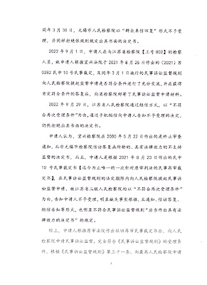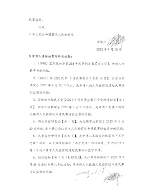 可能是司法人员枉法裁判的犯罪罪行已经暴露,宜兴市检察院与无锡市检察院出于官官相护的原因,在超过半年的时间拒不依法受理张建平先生的监督申请。在向江苏省检察院两次提起对宜兴市检察院与无锡市检察院拒不依法受理的监督申请中,专门就地方两级检察院的行为与过程做了陈述,及民事诉讼监督不能违反“重新从新”原则,请求根据人民检察院民事诉讼监督规则的规定启动上级监督程序,但江苏省检察院一而再司法监督不作为。
