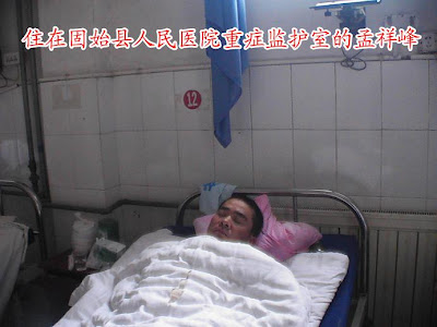 就在今年的“根亲文化节”即将来临的11月4日下午,固始县规划局城监大队50多人在城郊乡茶林场村八里庄村民组强拆农民房屋,打伤8名村民。笔者在固始县人民医院重症监护室只见到袁建华、孟祥峰、杨仕荣、孙启兰(83岁的老太太)四个轻伤者,其余的几位重伤者已经转到外地医院治疗;村民许尔江被打成脑出血重伤,于5日上午从固始县人民医院转至合肥市医院治疗;袁建华(13839713250)被打成腰骨骨折轻伤;孟祥峰(13849759638)、杨仕荣(13783975241)、孙启兰分别为轻伤和轻微伤。