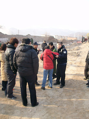 我不间断打110找督察投诉,从11点到晚上8点钟离开,也没有看见督察的出现,我依照110的提示,及时报案,要求对违法强拆、抢夺财产,殴打他人的行为立案,派出所就是不给立案。我朋友张建平给门头沟公安分局投诉台69835154打电话,从一个高姓警官的解答录音中,清楚地听到,“派出所警察和治安警察正在现场处理问题,只要没有合法手续,就抓人。”高警官说的非常的好,确与事实正相反。(下附录音)