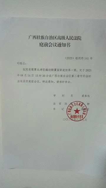 (维权网信息中心报道)2023年8月14日,本网获悉:2023年3月31日广西人权律师覃永沛一审被以煽动颠覆国家政权罪判刑5年,其不服判决提起上诉,于今日举行二审庭前会议。而今天广西高院以侮辱方式审理人权律师覃永沛案件。