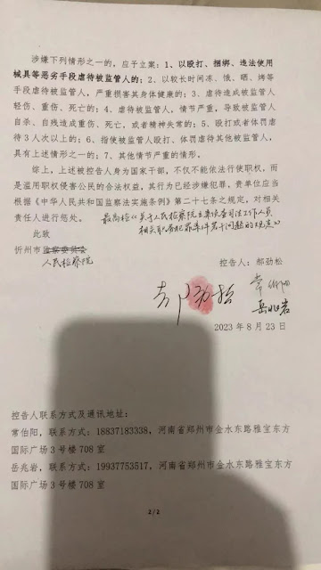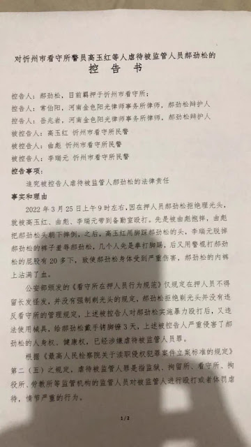 (维权网信息中心报道)2023年8月25日,本网获悉:获刑9年的山西著名人权捍卫者、法律公益人郝劲松先生狱中遭残暴殴打虐待,日前郝劲松及其代理律师已向山西省忻州市人民检察院提起正式控告。